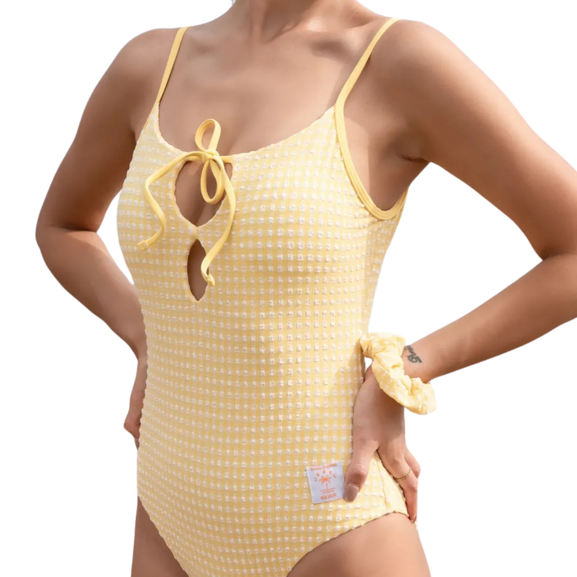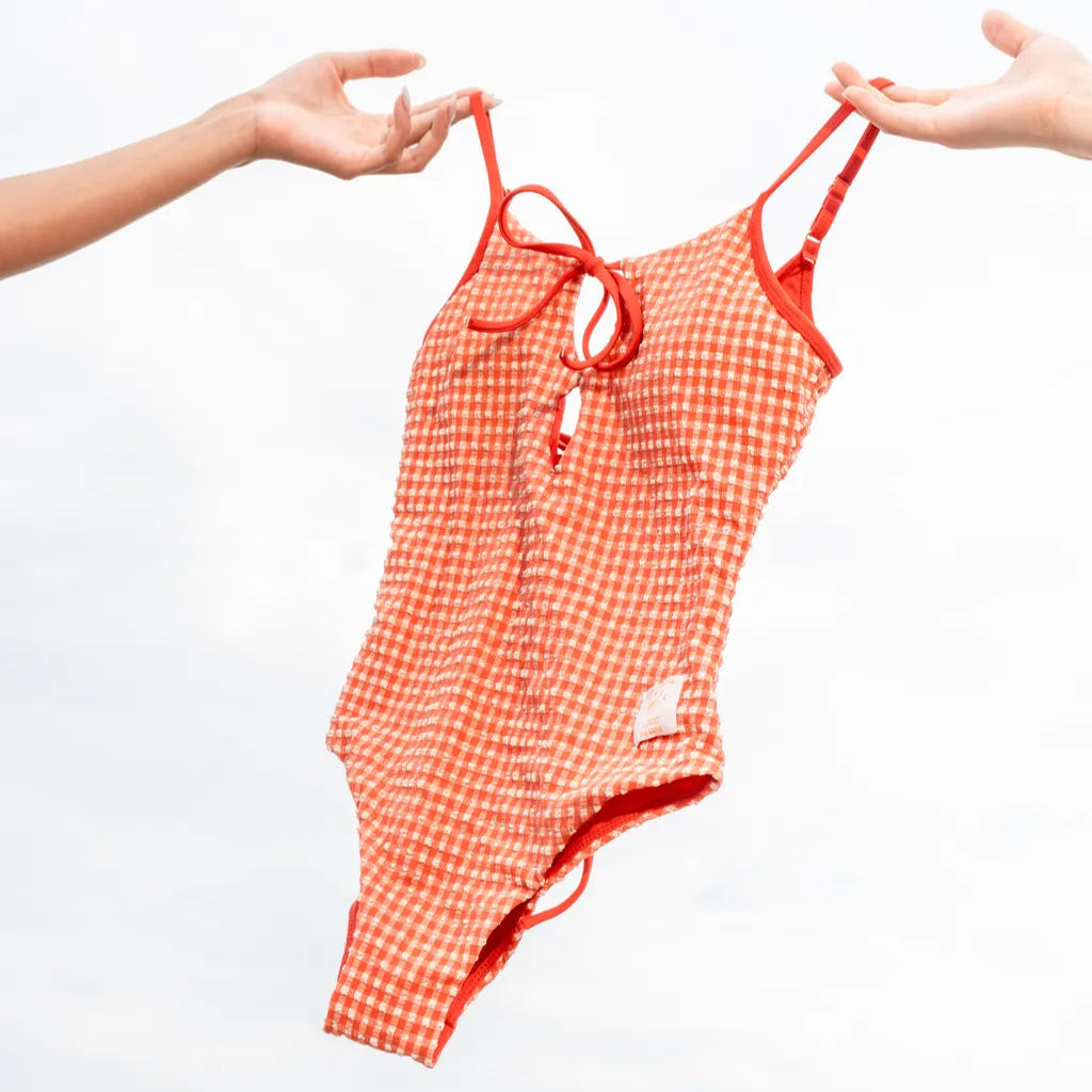 凹凸紋理的格紋面料,呼應60年代復古衝浪風格