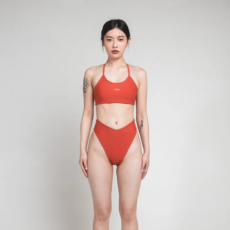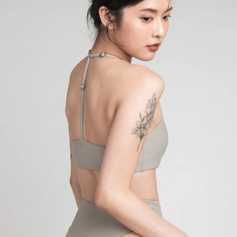 - 繞繞頸肩帶設計修飾肩頸線條,T字後背與肩帶皆可調整長短,加強穩定性。下圍寬帶不緊繃,五金使用不易氧化的鋅與金材質。